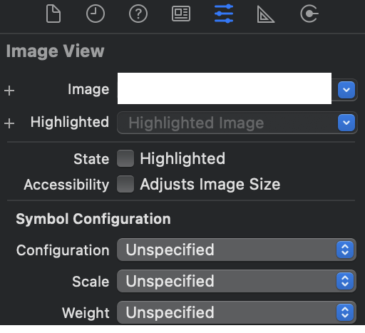 Image Set은 Image View를 선택한 상태에서 속성 탭에서 Image 영역을 통해 추가할 수 있다. 정상적으로 Image Set이 추가되었다면 드랍다운 메뉴에 이미지 아이콘이 보일 것이다.