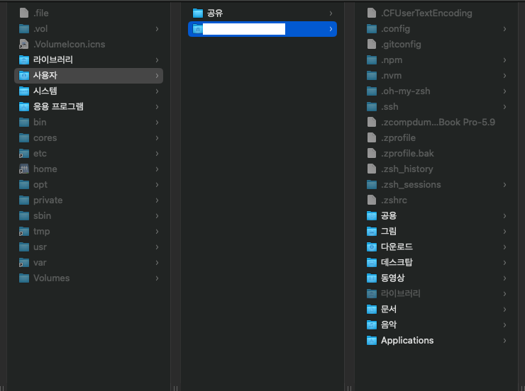 여기서 특히 중요한 게 ssh키와 zshrc 설정이다. 둘 다 보이지 않는 파일들이기 때문에 cmd + Shift + . 키로 숨김 설정된 파일들을 표시하고, 복사해야 한다.