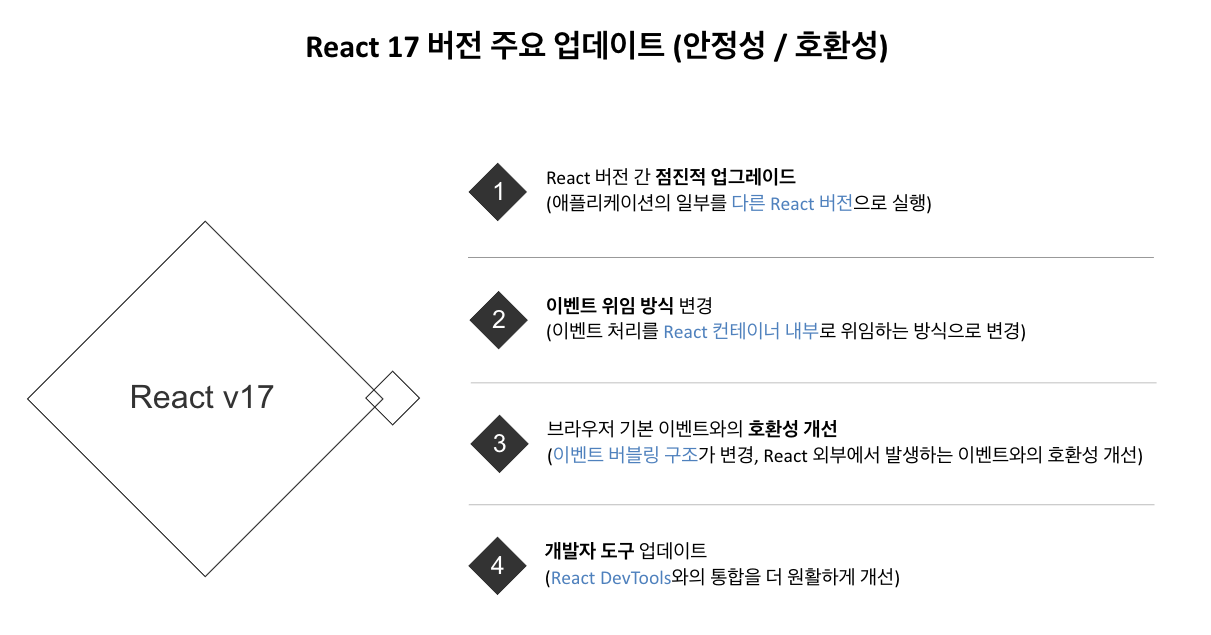 해당 버전에서의 업데이트는 안정성과 효율성 측면에서 크게 향상된 것을 알 수 있다. 대중화되어 가던 리액트에 날개를 달아준 셈이다.