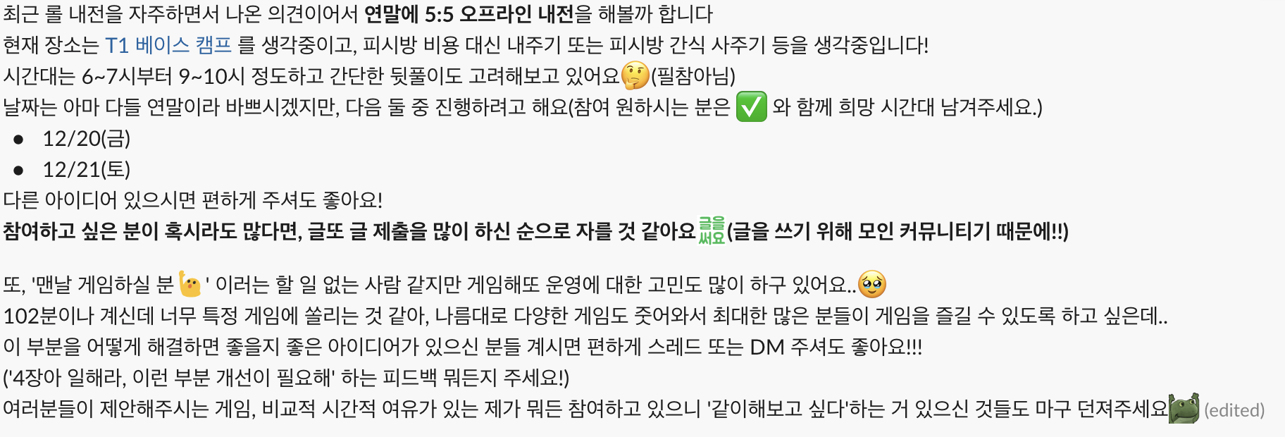 게임해또는 소모임치고는 꽤 규모가 큰 채널이었다. 아무래도 직종이 직종이다 보니 게임에 관심 있는 사람들이 정말 많았던 것 같다. 덕분에 많은 분들과 다양한 게임들을 해볼 수 있었고, 많이 친해질 수 있었다.