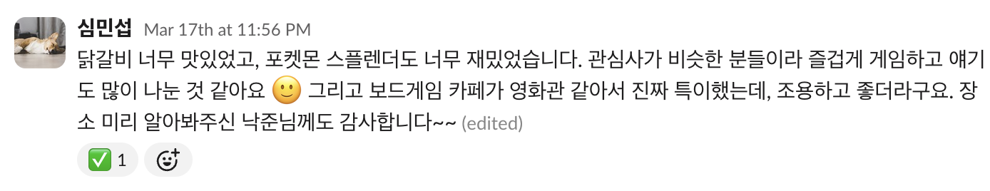 이번 10기가 첫 참가였기 때문에 소모임에 참석하기에 은근 용기가 필요해 처음에는 내가 진심으로 편하게 느낄만한 소모임부터 참석해보고 싶었다.