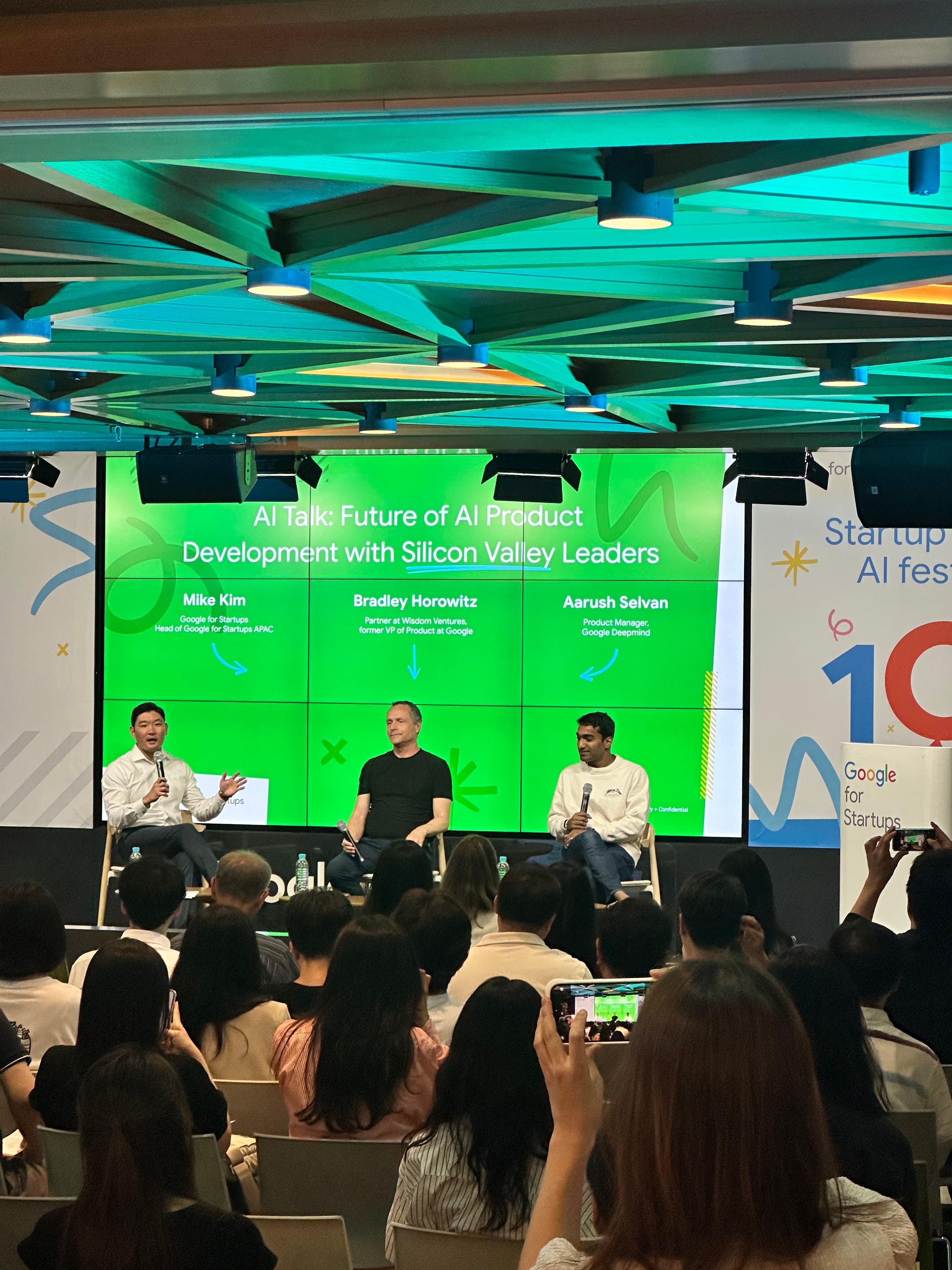 행사 이름에 스타트업이 들어가 있는 점에서 유추가 가능하듯 해당 이벤트는 스타트업을 준비하거나 이미 창업 중인 사람들을 대상으로 해서 비즈니스적 관점에 대한 부분들을 많이 이야기했다. AI 혁신이 기술적으로 정확히 어떻게 이루어졌는지 등에 대한 이야기보다는 어떻게 AI 혁신을 비즈니스에 활용하고 사용자들의 니즈에 맞춰 시장에 적응할 수 있을지 와 같은 류의 주제로 이야기가 진행되었다.