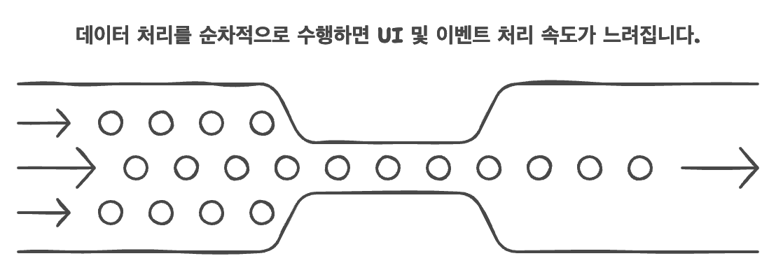 비동기 Bridge 구조는 React Concurrent Rendering(동시성 렌더링), Suspense, Transitions처럼 최신 웹 React에서 도입된 기능들의 사용에 제한되는 문제점도 발생시켰다. Concurrent Rendering은 여러 렌더링 과정을 동시에 처리하면서 필요한 UI만 우선 렌더링 할 수 있게 해 주는데, 기존 브리지 구조에선 JS와 네이티브 간 비동기 큐를 거치기 때문에 React의 동시 작업/우선순위 조정 등이 네이티브 UI에 바로 반영되지 못했다.