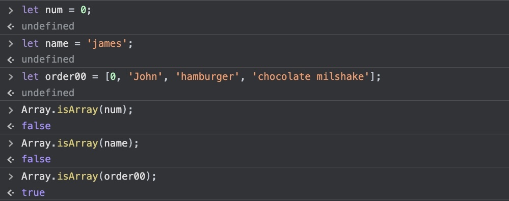 배열의 경우 현재 자료형이 배열인지 구분하기 위해서는 조금 다른 방법을 활용해야 하는데, Array.isArray() 메서드를 활용해야 확인이 가능하다. 해당 메서드를 통해 현재 자료형이 배열인지 아닌지 확인할 수 있으며 해당 메서드는 전달인자로 받은 값이 배열이 아닐 경우 '거짓false'을 반환하고, 배열이 맞다면 '참true'을 반환한다. 이 때 한 가지 의문점이 든다.