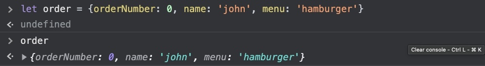 위의 예시처럼 객체는 데이터를 읽는데 있어 (개발자 또는 유저에게) 가독성을 높이는 장점도 있다. 배열의 예시와 다르게 객체의 경우 키key와 값value이 한 쌍을 이루기 때문에 주문번호(orderNumber)가 0이고, 주문자의 이름이 'john'이라는 것을 보다 명확히 이해할 수 있다. 객체의 값에 접근하기 위해서는 두 가지 방법을 사용할 수 있다.