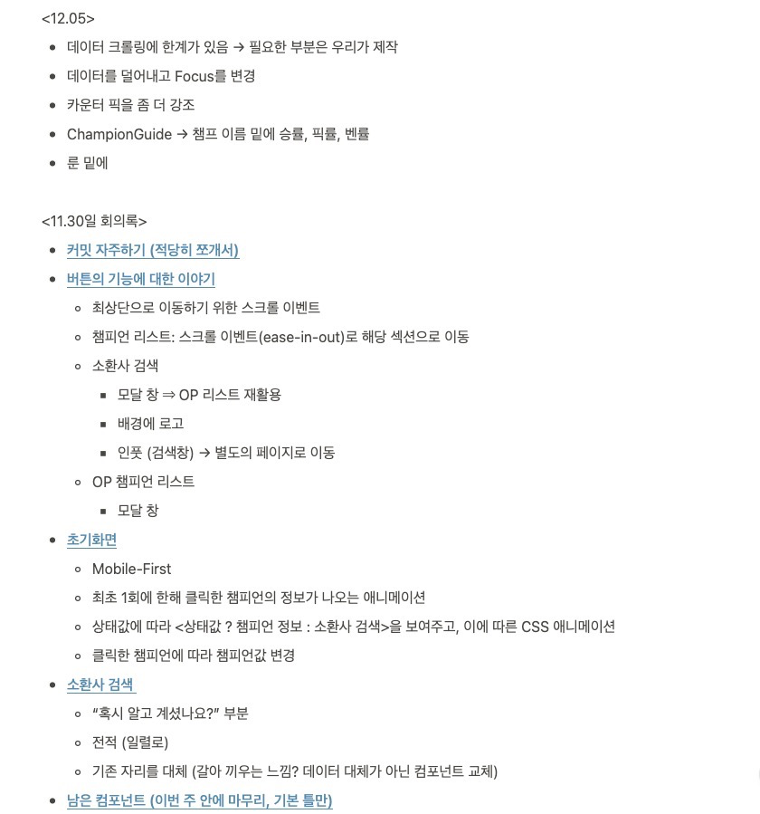 정기적으로 진행하는 회의를 통해 서로의 의견을 정리하고 방향성을 설정하는 과정도 팀 프로젝트의 재미를 느낄 수 있는 계기였다. 지속적인 회의를 통해 필요한 기능과 디자인을 고려하고, 서로가 흥미를 느끼는 공통의 주제를 개발해 나아가는 과정이 무언가를 "함께" 만들어간다는 느낌을 받을 수 있었다.